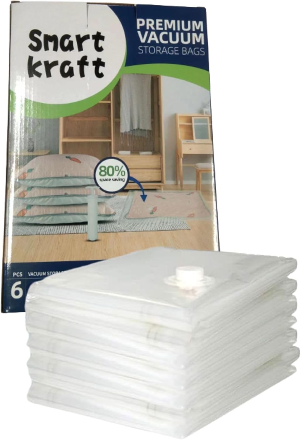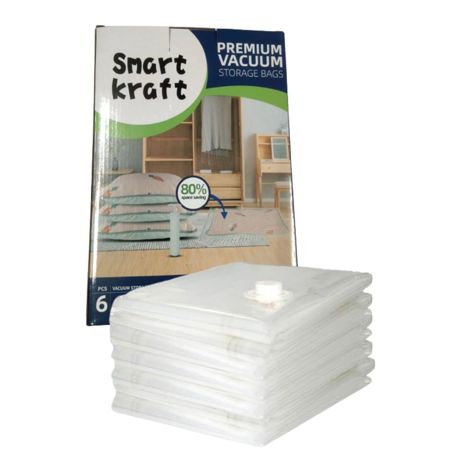 SMART KRAFT 6 PACK 80 X 60CM LARGE VACUUM STORAGE BAGS FOR CLOTHES, DUVETS, BED