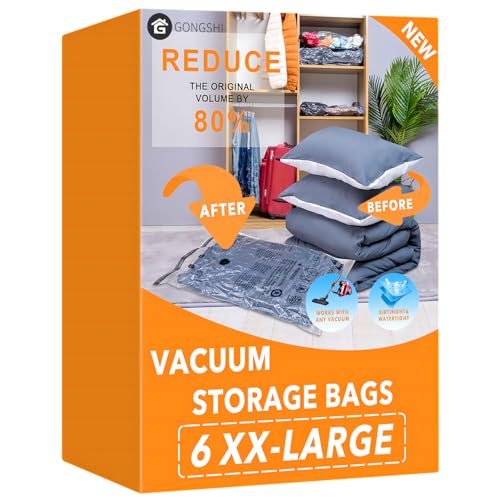 6 XX Large Vacuum Storage Bags, Space Saver Sealer Compression Bags for Blankets, Comforters, Pillows, Clothes Storage