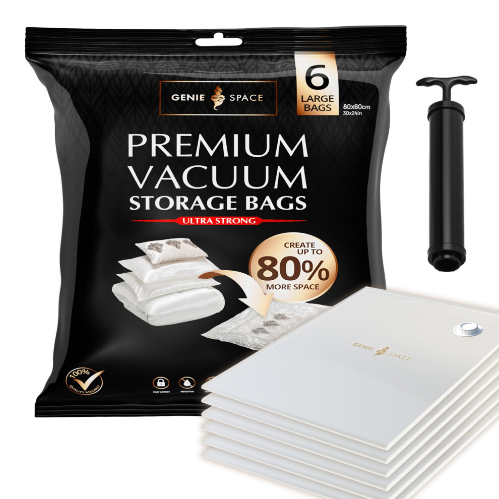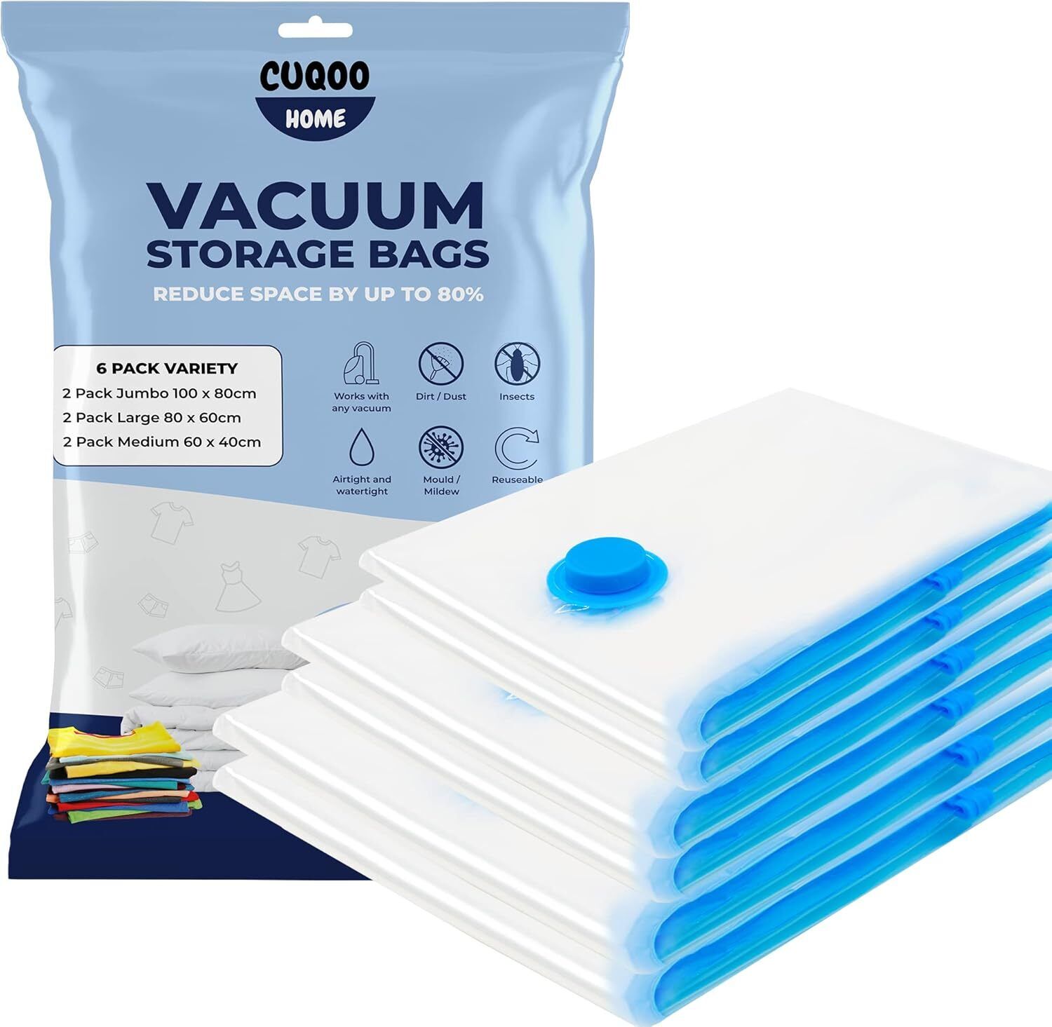 Large Vacuum Storage Bags - Pack of 6, 80x60cm | Strong Space Saving Bags | Premium Airtight & Reusable Vacuum Bag for Clothes, Bedding, Towels,