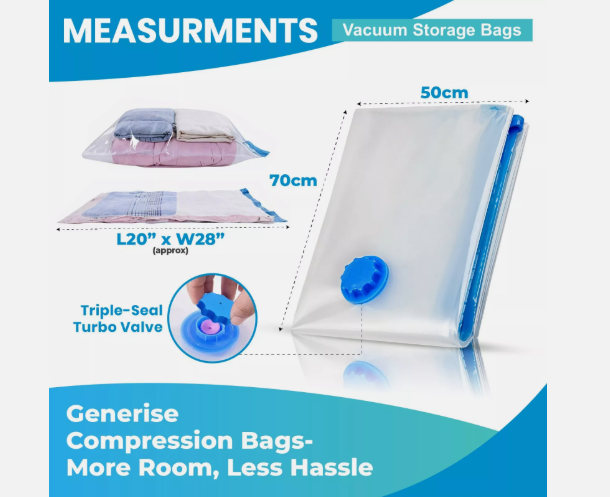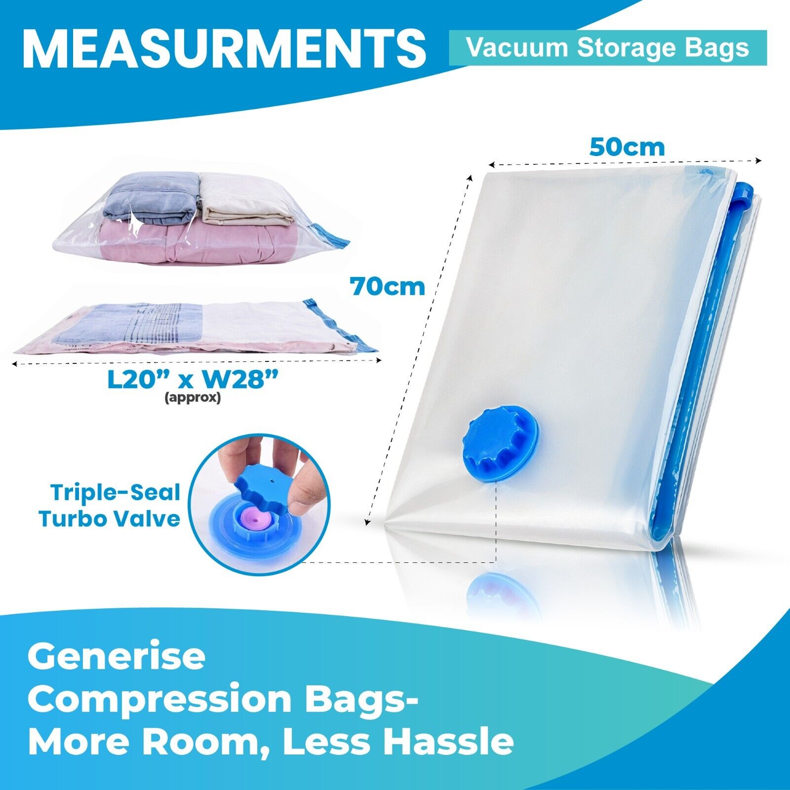 12 Large Vacuum Storage Strong Plastic Bags Jumbo Compression Bags 50cm x 70 cm