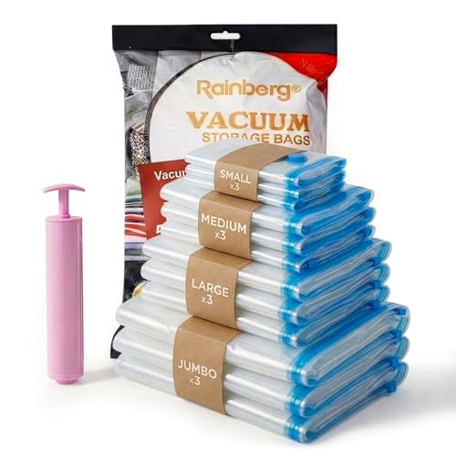Rainberg Pack of 8 Large, Premium Vacuum Storage Bags, 80% More Storage, Vacuum Sealer Bag with Triple Seal Turbo-Valve for Max Space Saving in a Storage Bag (3 of Each Size)