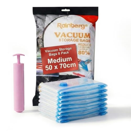 Rainberg Pack of 8 Large, Premium Vacuum Storage Bags, 80% More Storage, Vacuum Sealer Bag with Triple Seal Turbo-Valve for Max Space Saving in a Storage Bag (Medium, 50 x 70cm)
