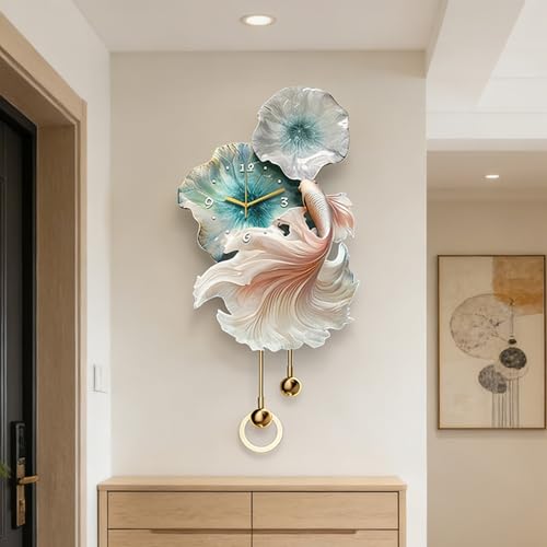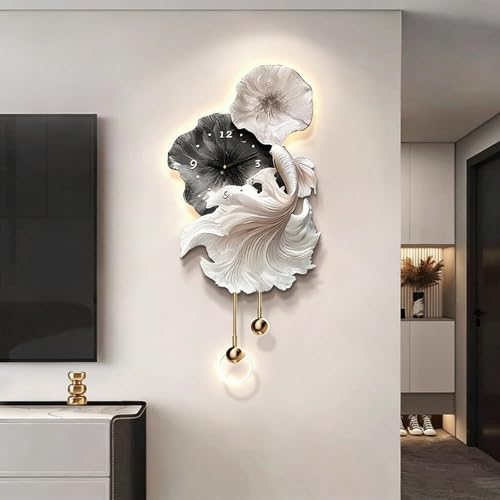 PreuepltrMa 3D LED Wall Art, Betta Fish Silent Wall Clock with LED Light Modern Large Wall Clock for Living Room Entryway(D Sensor,50 * 100cm/19.69"*39.37"in)