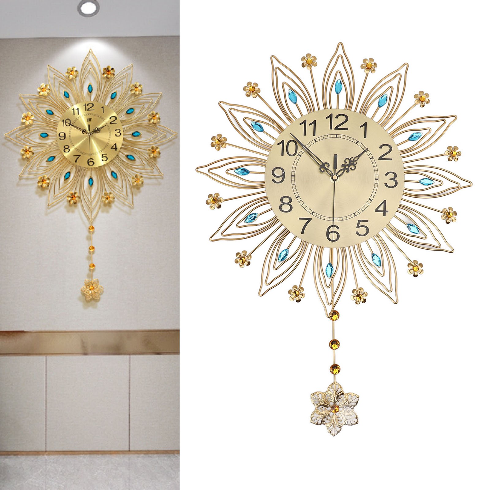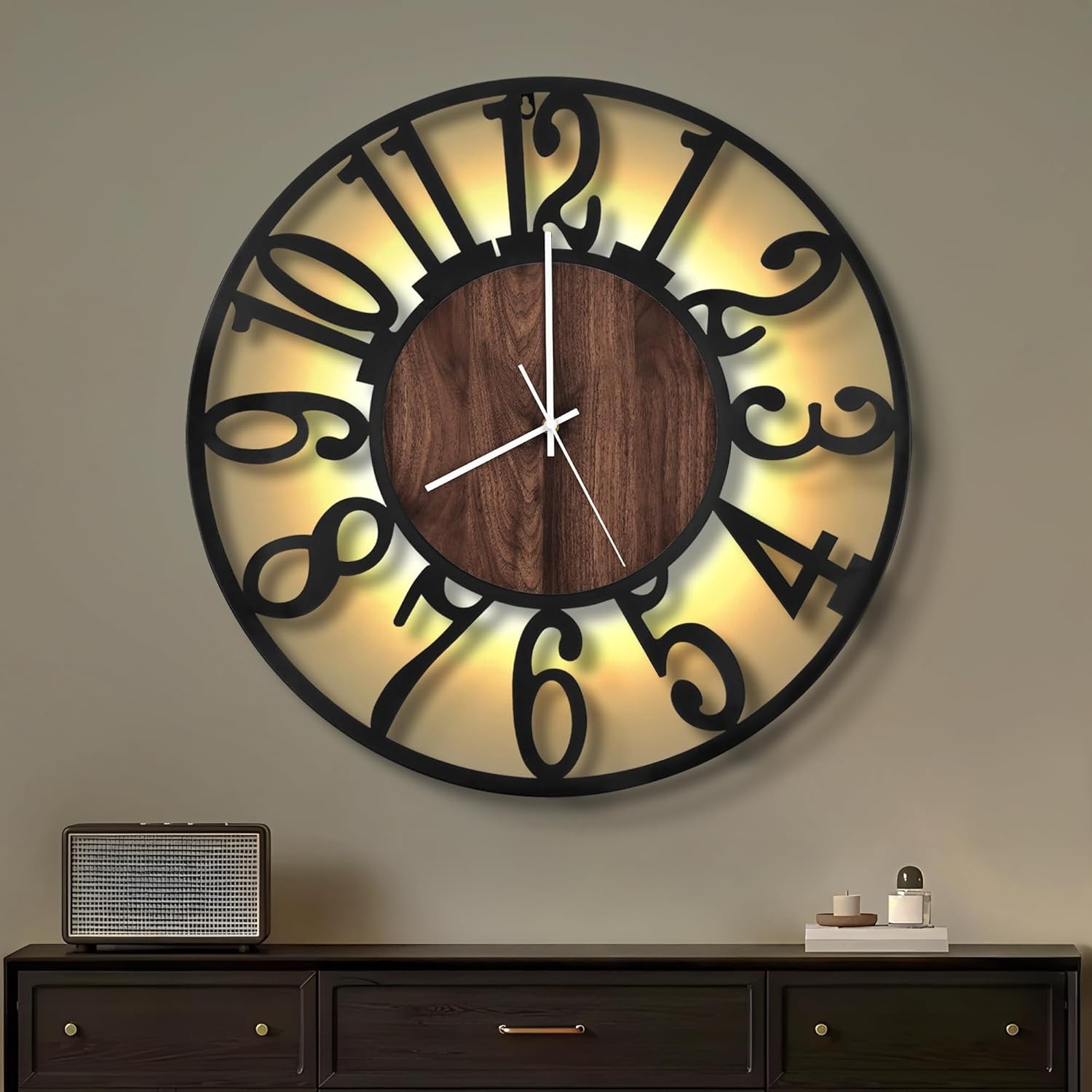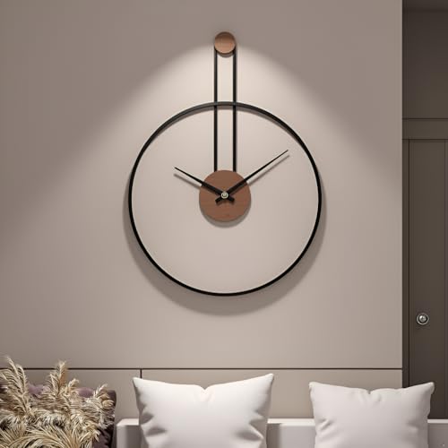 Large Decorative Wall Clock for Living Room,Metal & Walnut Dial Home Decor Sile