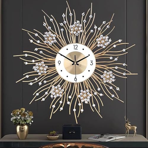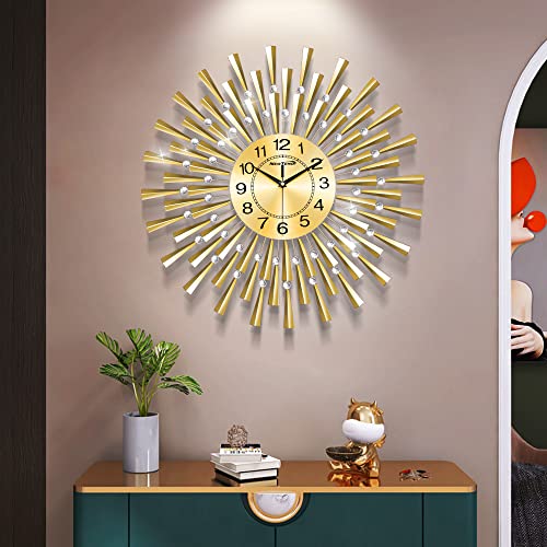 NEOTEND Large Wall Clock for Living Room Decor Gold Modern Silent Kitchen Big Wall Watch Clock for Bedroom Decorative Office Non Ticking Battery Operated Frameless Crystal Wall Decor 24 Inch