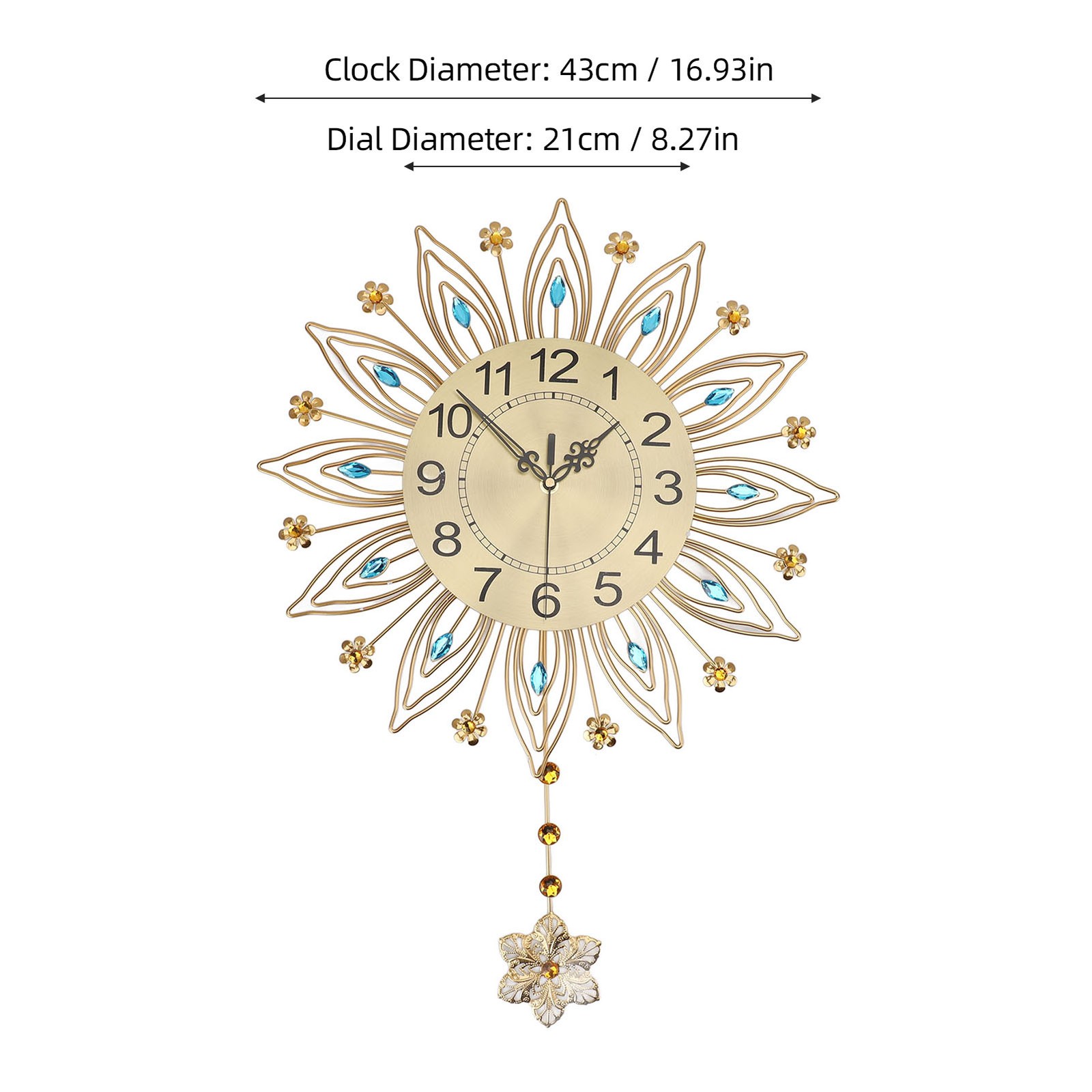 EMITDOOG Large Wall Clocks, Silent Sunflower Shape Chic Decorative Wall Clock, Modern Non-Ticking Round Clock Dial Iron Large Wall Clock for Living Room Decor Entrance Office Cafe,20 Inch