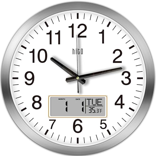 HITO Silent Wall Clock 35cm Battery Operated Temperature Date Large Wall Clock for Living Room Office Classroom Bedroom Decor