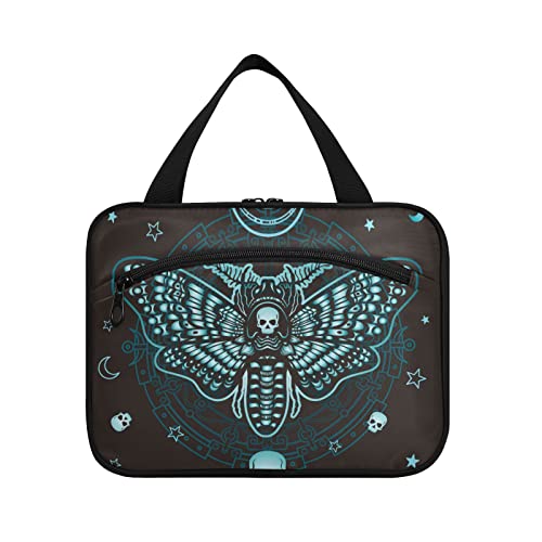 Travel Toiletry Bag, Gothic Skull Butterfly Large Wash Bag Makeup Organizer for Women Ladies Cosmetic Bag with Hanging Hook