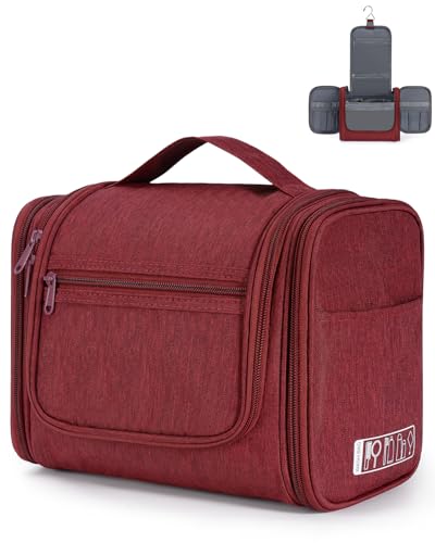 Large Hanging Toiletry Wash Bag Travel Makeup Cosmetic Organizer for Men Women by WANDF (Red)