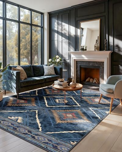 XSIVOD Blue Area Rugs for Living Room, Washable Large Rugs for Bedroom, Non Slip Vintage Rugs for Dining Room Office, Soft Low Pile Rug Accent Floor Carpet for Home Decor, 240 x 300 cm