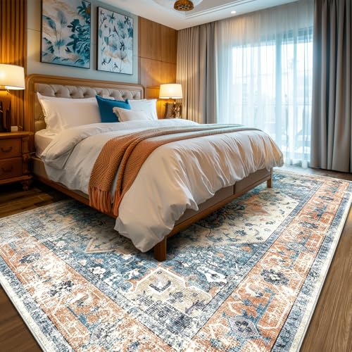 BedLooms Machine Washable Large Rugs Living Room Orange Teal 120 x 170 cm Traditional Vintage Boho Rugs for Bedroom Non Slip Area Rugs for Kids Room Lounge Short Pile Floor Carpet (Regal)