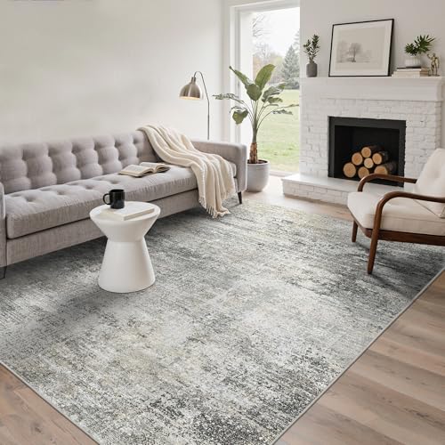 BEIMO Large Washable Rugs Living Room 160x230cm, Modern Style for Bedroom Soft Short Pile, Non-Slip Rugs for Living Room, Dining Room, Simple Abstract Grey