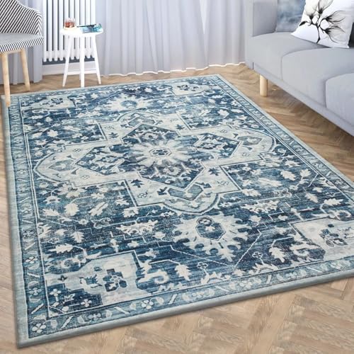 DEFYNEE Machine Washable Large Rugs Living Room, 180x270 cm Non-Slip Area Rugs, Short Pile Blue Rug for Bedroom, Hallway, Bedroom, and Kitchen, Office, Blue