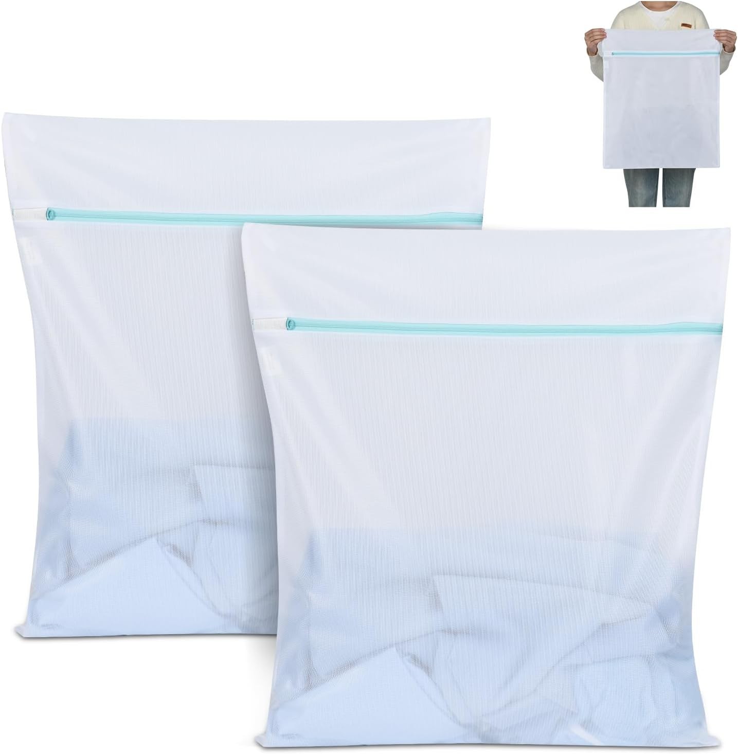 Vivifying Mesh Laundry Bag, 2 PCS Large Washing Machine Bag with Zip, 23 x 19 i
