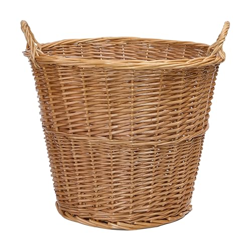 Wickerfield Round Wicker Storage Basket with Handle, Fireplace Accessories, Large Log Baskets for Wood Burner and Indoor Log Store (Honey)