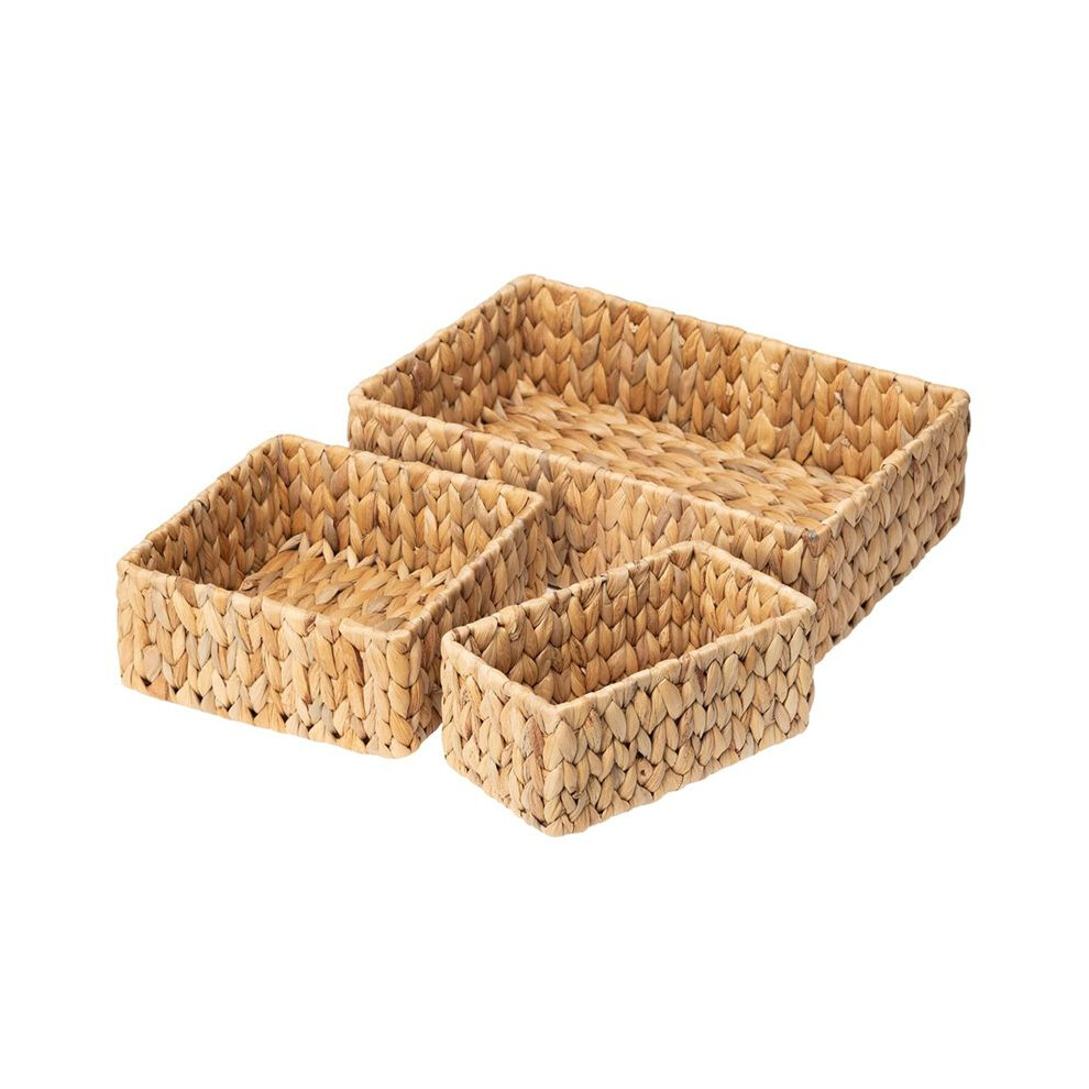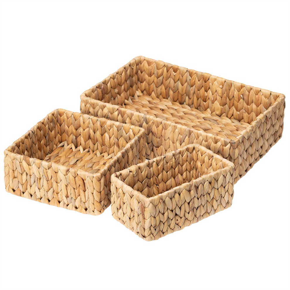 3 Set Natural Seagrass Handwoven Wicker Storage Baskets Household Organizer Large Rectangular