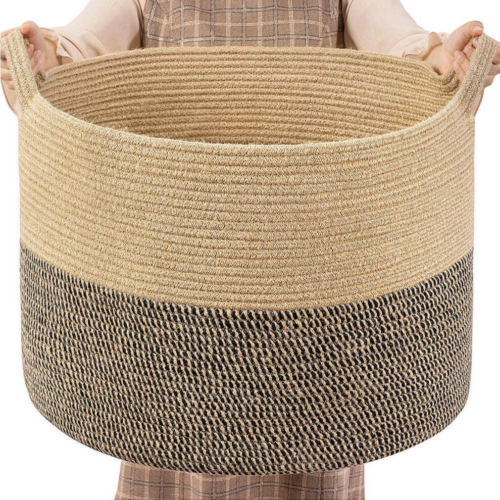 Extra Large Laundry Hamper Woven Baskets for Storage Blanket Basket Living Room Wicker Storage Basket for Organizing Jute Large Baskets for Toy Pillow Shoe, 55x35cm, Black Jute