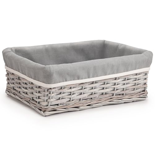 Woodluv Willow Wicker Storage Basket for Shelves, Gift Hamper Baskets, Multi-purpose Decorative Organiser, Large - Grey