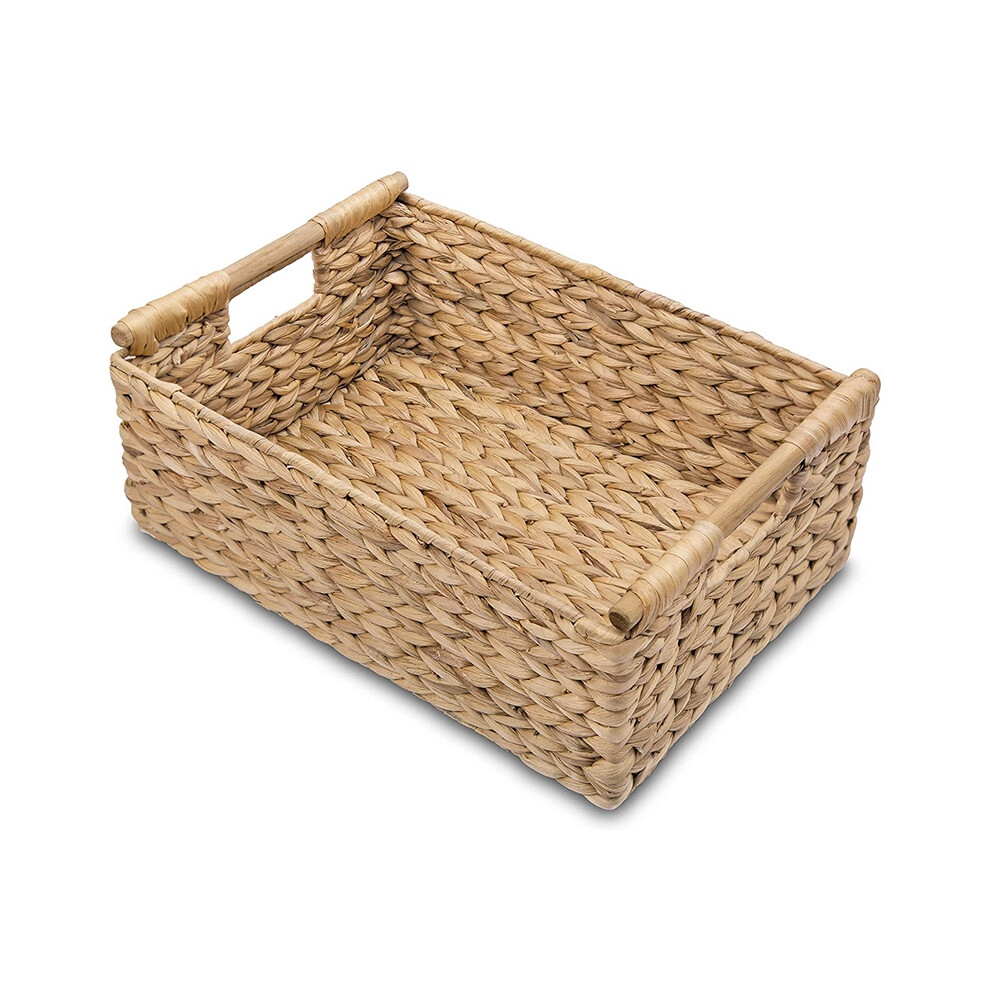 Woven Water Hyacinth Organiser Storage Baskets Wicker Hamper Basket With handles Gift Toys Bathroom Basket (Large)