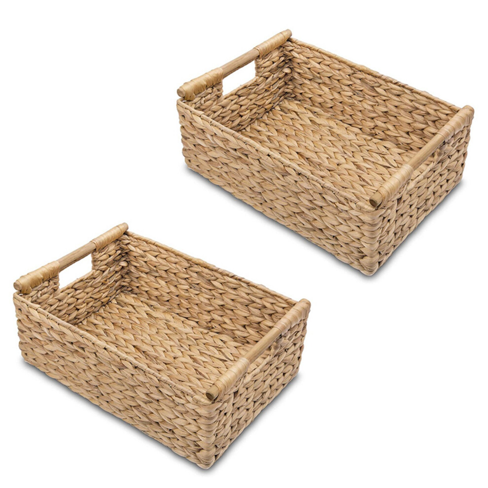 StorageWorks Wicker Storage Baskets for Shelves, Large Shelf Baskets with Handles, Rectangular Wicker Storage Boxes, Woven Basket for Organising Pantry Bathroom, Natural Water Hyacinth, 2-Pack