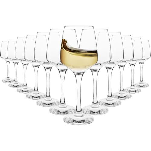 Homiu Large White Wine Glasses | Set of 12 | 330 ML | Crystal Wine Drinking Glass | Florence Collection | Party Wedding Gift Cocktail | Home Restaurants Kitchen Glassware | Dishwasher Safe