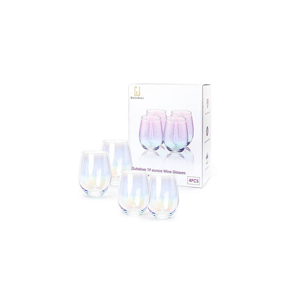Gutsdoor Wine Glasses Large Stemless Wine Glasses 18.9 Ounce Set of 4 Iridescent Glasses All-Purpose Drinking Wine Beverage Glasses for Red White