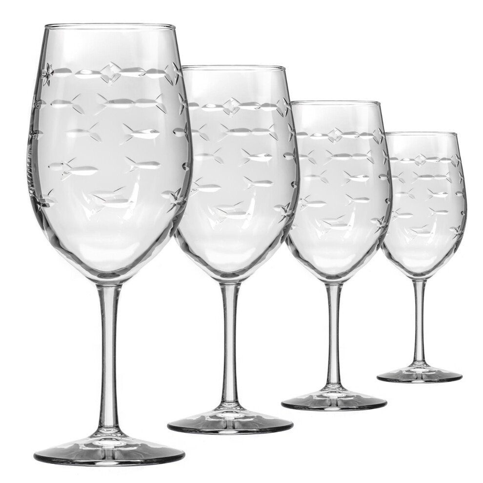 Rolf Glass School of Fish 18oz All Purpose Wine Glass | Set of 4 | Large Wine Glasses | Lead-free Crystal Glass | Engraved Wine Glasses | Made in the