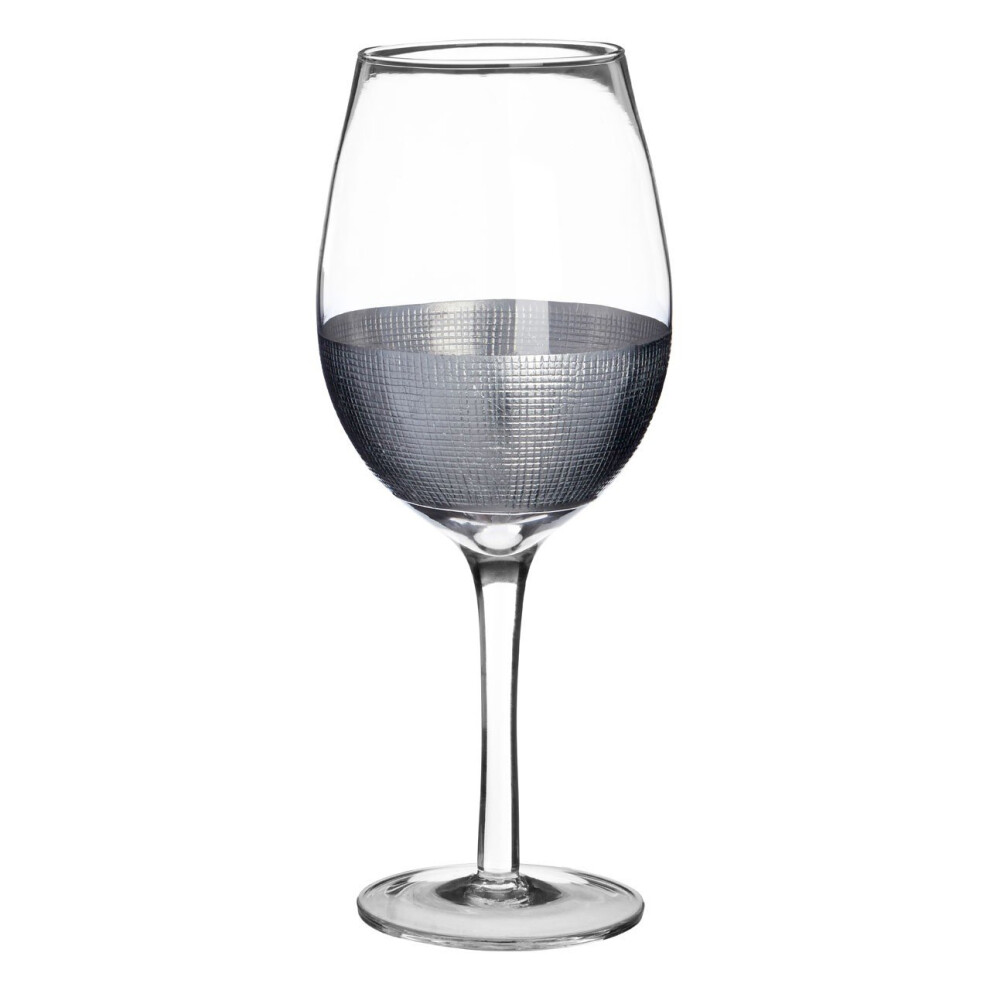 Premier Housewares Set of 4 Large Wine Glasses - Silver Crosshatched Design, Silver