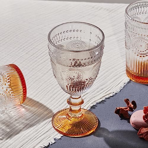 KARACA Sunflower Embossed Wine Glass, 314ml, Transparent Orange, Vintage Style Large Wine Glasses, Durable Stem, Chip-Resistant Rim, Dishwasher Safe