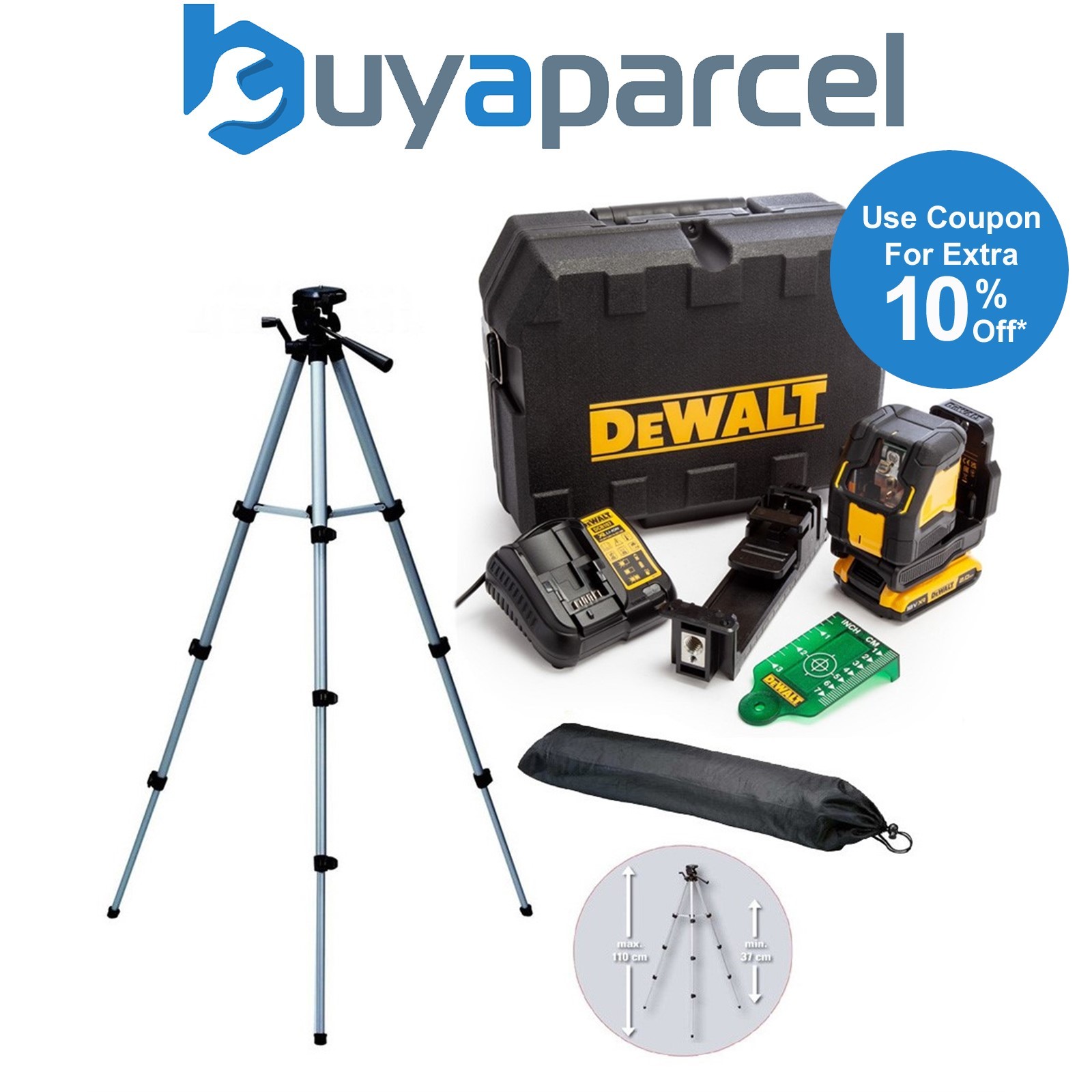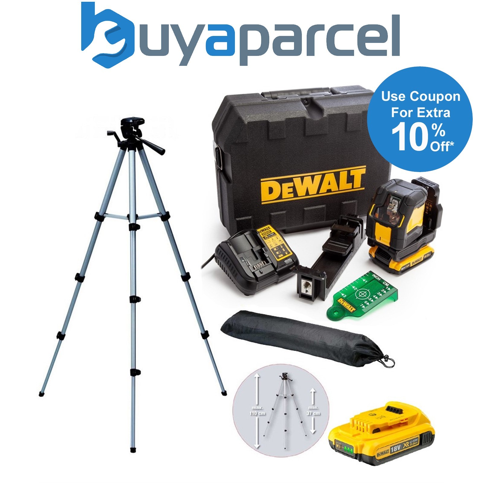 DeWalt DCLE34031D1 18V XR Compact Green Laser 3 x 360 Degree 2.0Ah + Tripod +Bag