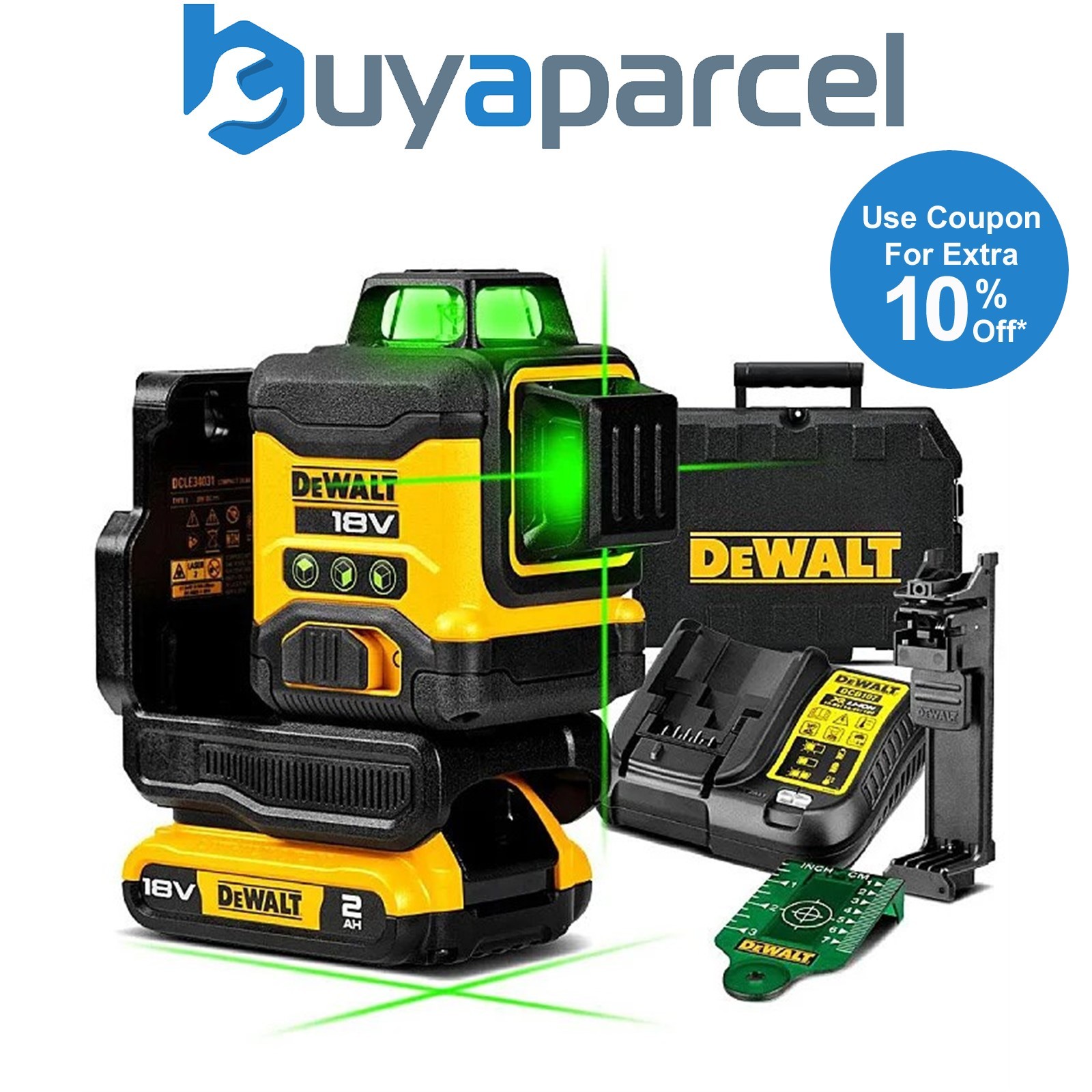 DeWalt DCLE34031D1 18V XR Compact Green Laser 3 x 360 Degree - 2.0Ah Battery