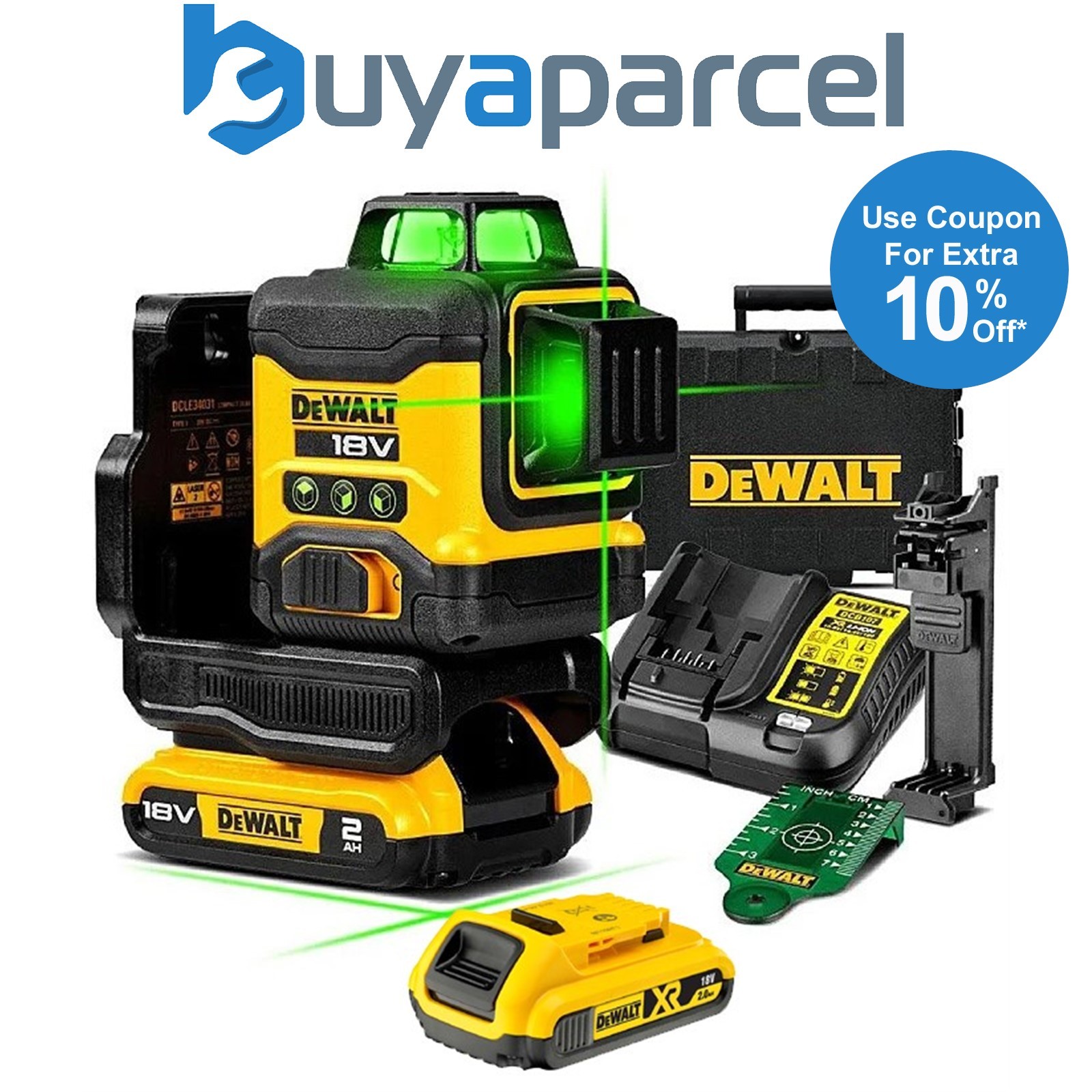 DeWalt DCLE34031D2 18V XR Compact Green Laser 3 x 360 Degree - 2 x 2.0Ah Battery