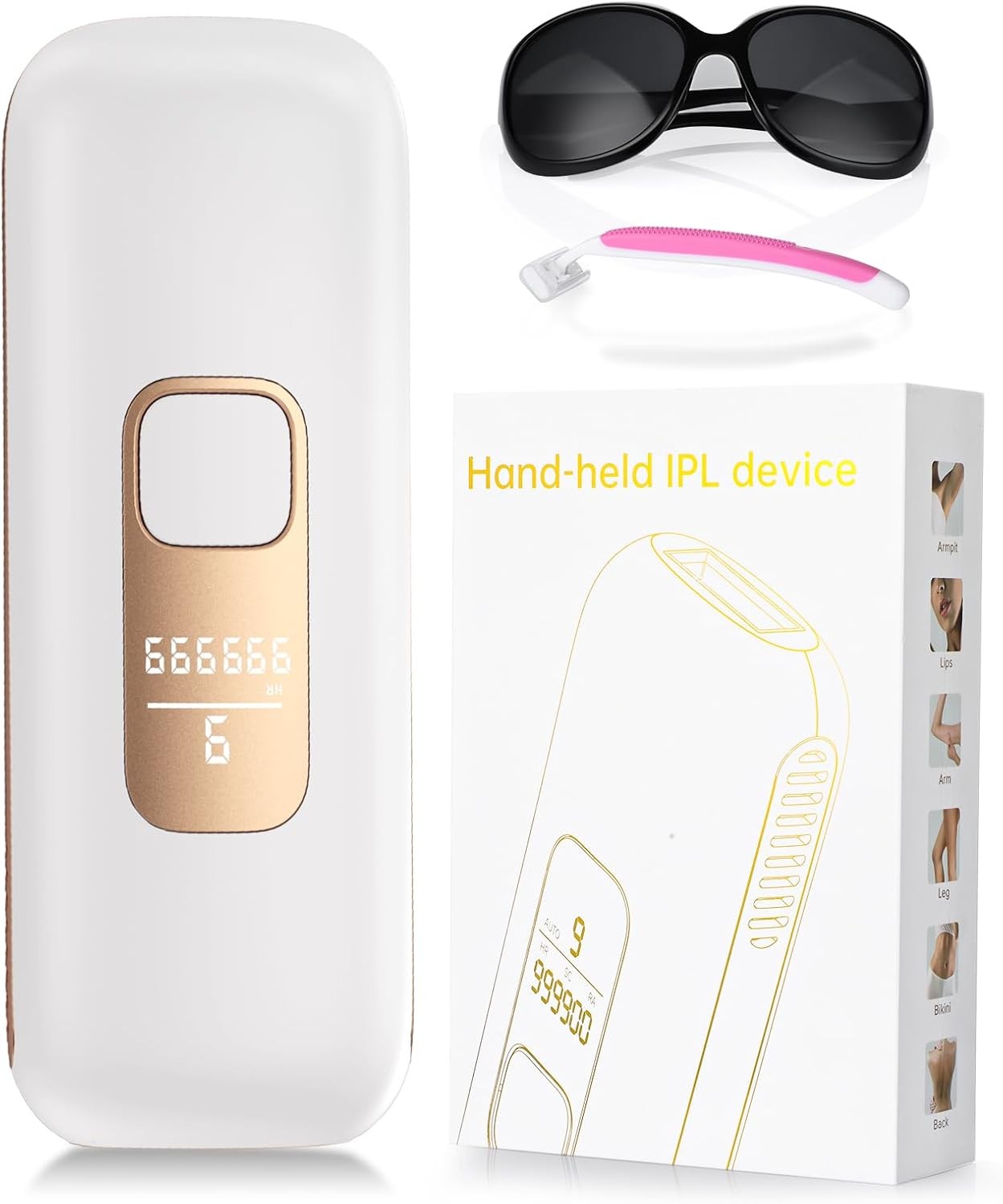 IPL Hair Removal Devices, NALONE Laser Hair Removal Device 999.999 Flashes for Women/Men, Up to 1200NM Wavelength, Two Mode, High Energy Levels Painless Laser Hair Removal for Whole Body (Gold)