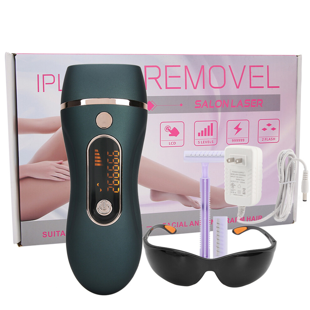 (Green) 990000 Flash IPL Laser Hair Removal Machine Quartz Lamp 5 Gears Permanent Hair Epilator