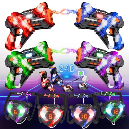 VATOS Rechargeable Laser Tag Guns Set of 4-2.4GHz Data SYNC Display Laser Tag Gun with Vest 4 Players, Infrared Laser Tag Game Indoor & Outdoor Play for Kids Boys Girls Teen Age 6-12+ Years Old