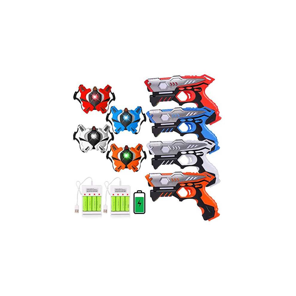 Rechargeable Laser Tag Guns - 4 Sets Infrared Laser Tag Sets with Gun Vest | Rechargeable Battery & Charger Upgraded Lazer Tag Game for Adults Kids