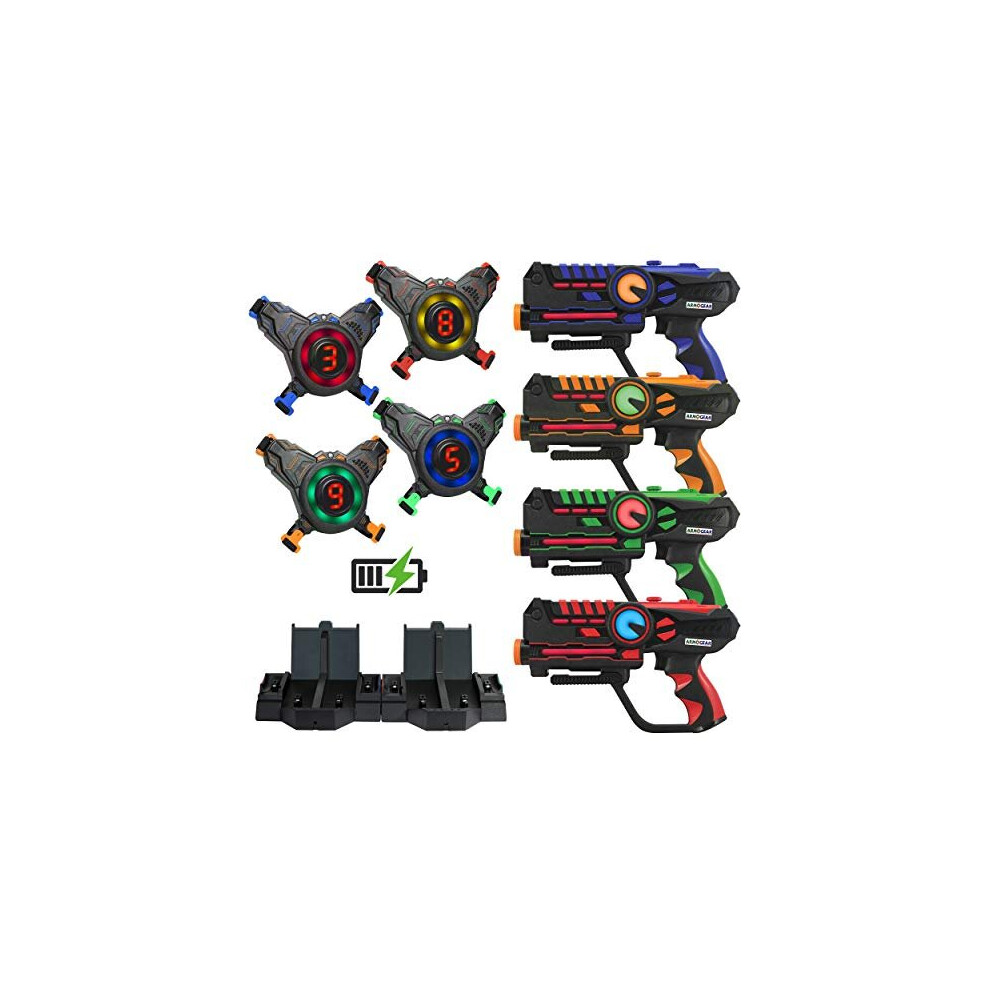 ArmoGear Rechargeable Laser Tag | Laser Tag Guns & Vests Set of 4 with Digital LED Score Display Vests | Lazer