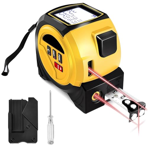 4-in-1 Laser Tape Measure with Laser Level Crosshairs,197ft/60m L-aser Distance+16ft/5m AutoLock Tape,Backlit LCD Display for DIY,Construction, Interior Design