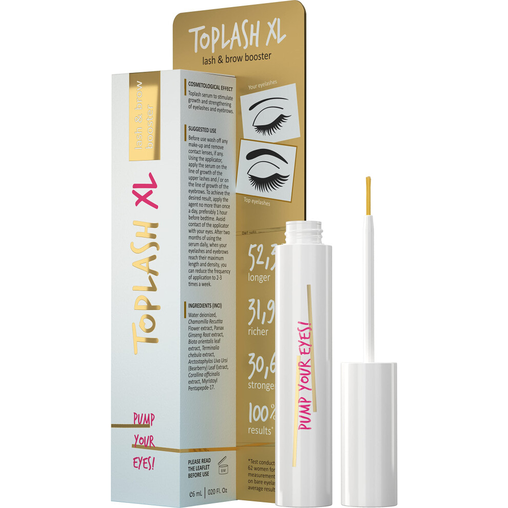 Toplash XL Lash and Brow Booster, Growth Serum with Eyelash and Eyebrow Enhancer, Promotes Stronger, Thicker, Healthier Lashes with Botanicals and