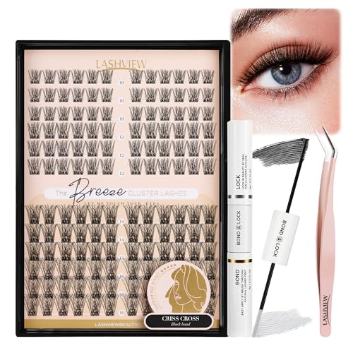 Fadlash Individual Eyelashes Cluster Lashes Kit 0.07 D Curl 12-18mm 80D+100D Diy Lash Extension Kit Fluffy Cluster Lashes With Lash Bond And Seal,Tweezers Light Fluffy Diy At Home