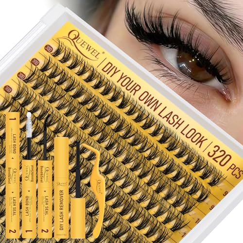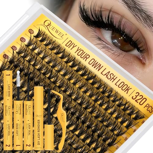 QUEWEL Clusters Lashes Kit 320 Pcs Individual-Lashes Kit, Waterproof Lash-Clusters Bond and Seal, Eyelash Clusters Applicator with Cluster-Lashes Glue Remover (QD-40D-kit)