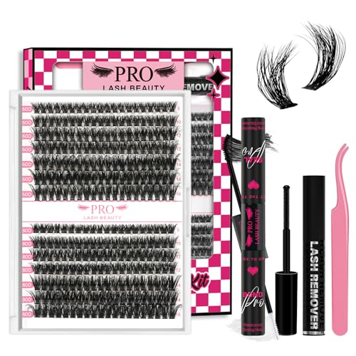 240 Pcs Cluster lashes Kit with 3D Lash Clusters Lash Bond and Seal Lash Tweezers DIY Cluster Eyelash Extensions Kit Easy to Apply at Home (60D+80D-D-8-16mix Kit)