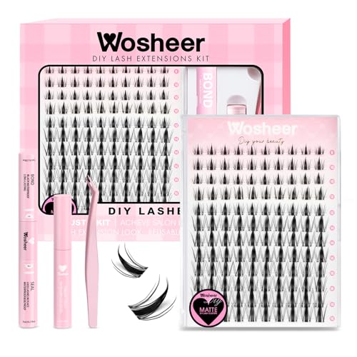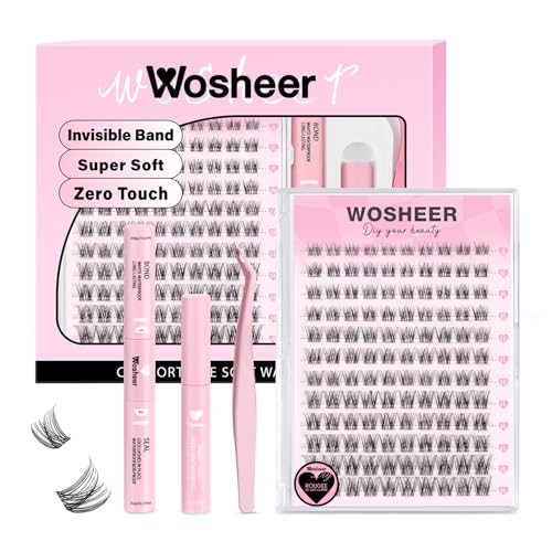 Wosheer Cluster Lashes Kit Lashes Individual Cluster Kit Natural Lashes Wispy Lash Clusters with Bond and Seal & Remover D Curvature DIY Lash Extensions (Rougee Kit, 8-16MM)