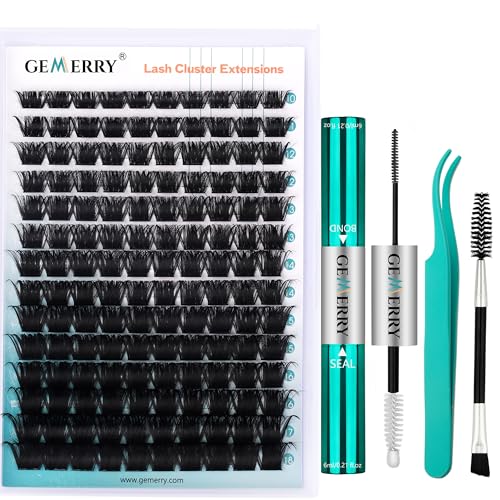 GEMERRY Lash Extension Kit 280Pcs Lash Clusters DIY Individual Eyelash Extension Kit D Curl Volume Cluster Lashes Wispy with Lash Bond and Seal and Lash Tweezers (60D-0.07D,10-18MIX-KIT)