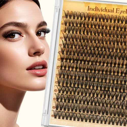 Cluster Eyelash Extension Kit 640pcs Individual Lashes Natural 10-16mm DIY Set with Lash Bond Seal and Remover Tweezers(40+50+60+80D)