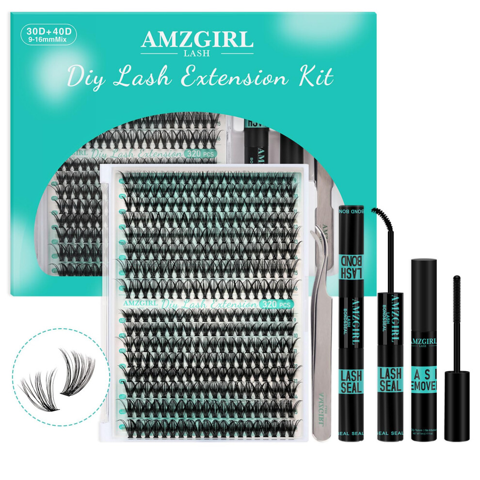 Lash Extension Kit 320Pcs,Diy Individual Lashes Clusters Kit,Lash Bond and Seal,