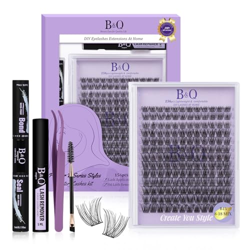 B&Quagen Lash Clusters Kit B15 - DIY Eyelash Extension Kit With 156 PCS 8-18mm Clusters, Lash Bond, Seal, and Applicator Tool