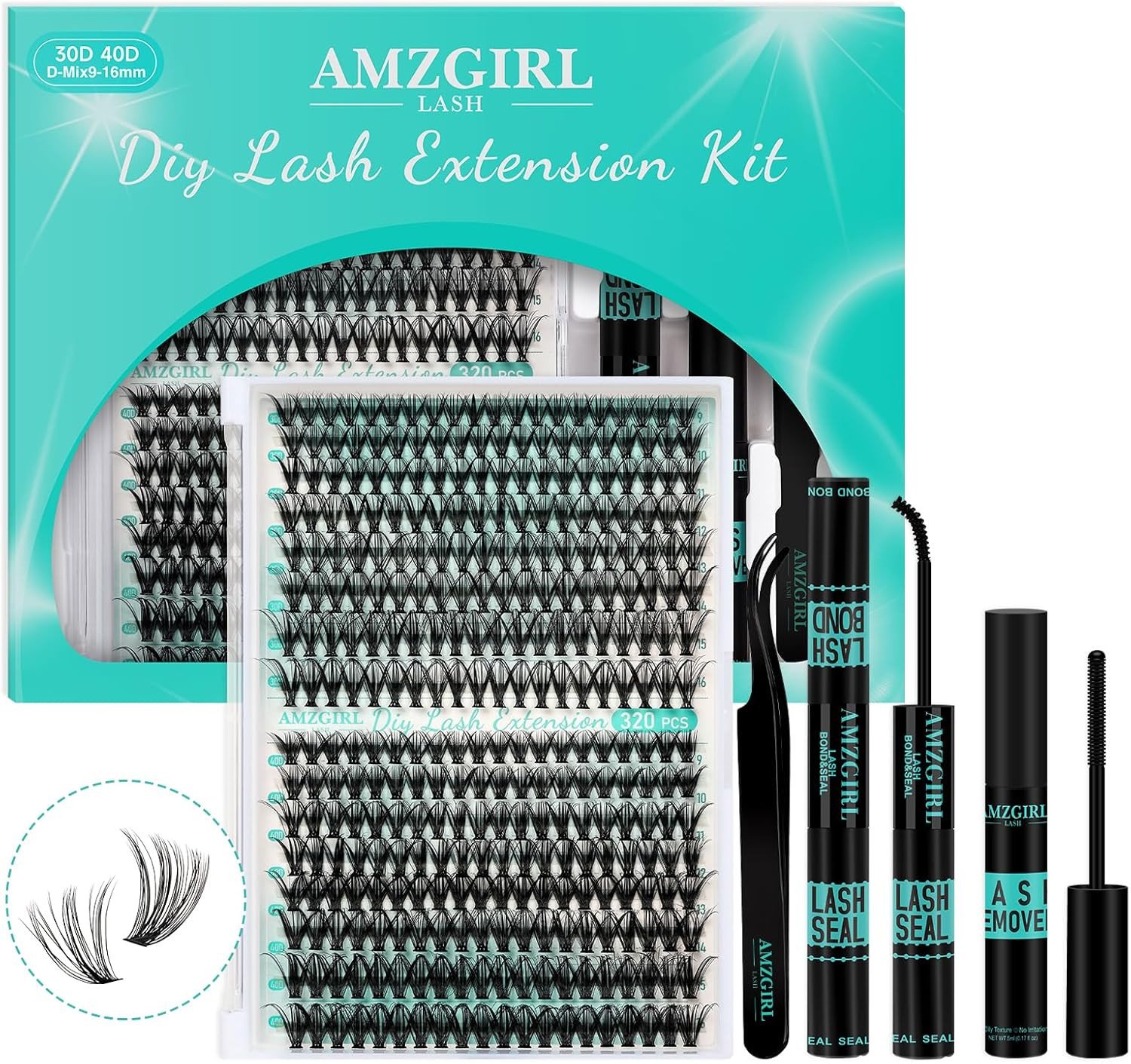Lash Clusters Kit 320Pcs,30D 40D Eyelash Extension Kit,Lash Bond and Seal Waterproof,Lash Remover for Individual Cluster Lashes Kit,Lash Applicator To