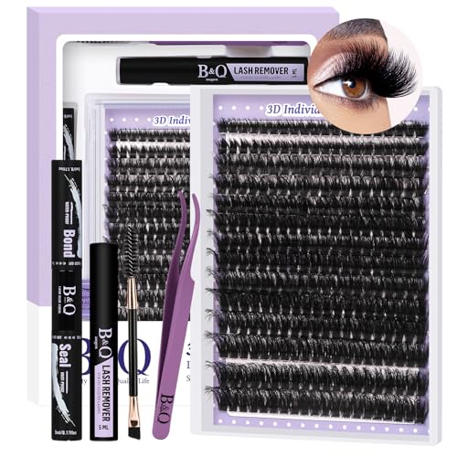 Cluster Lashes Kit 3D Style Individual Lashes Kit with 280 Pcs Lash Clusters Lash Bond and Seal Lash Tweezers Eyelash Remover Easy to Apply at Home