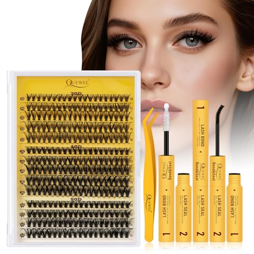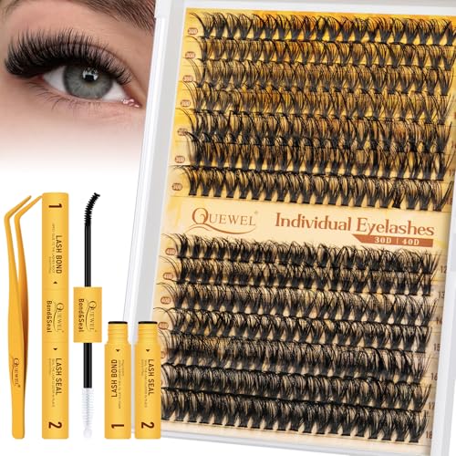 QUEWEL Clusters Lashes Kit 320 Pcs Individual-Lashes, Lash-Clusters Bond and Seal Waterproof, Eyelash Cluster Applicator with Glue Remover for Natural Look(QD-30D+40D-kit)